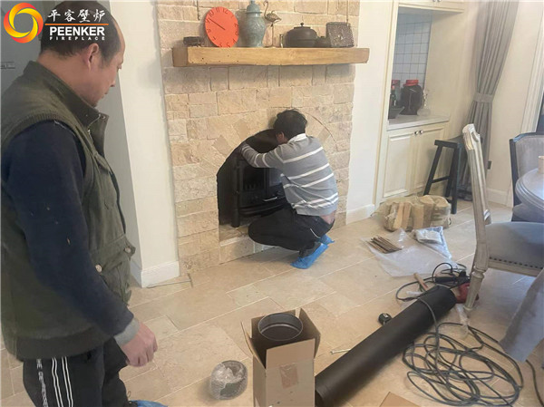 項(xiàng)目情況:獨(dú)立別墅建筑,已經(jīng)裝修完入住,建筑本身自帶磚石爐膛與磚石煙囪,但爐膛較小,所以選擇獨(dú)立式火爐安裝在磚石爐膛中,項(xiàng)目經(jīng)理帶隊(duì)上門安裝!