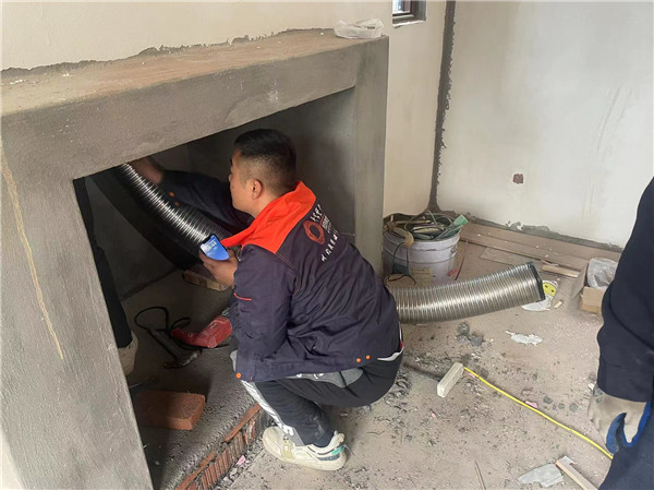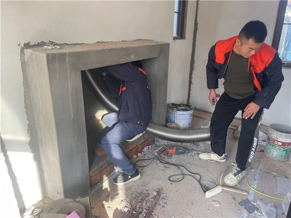 項(xiàng)目介紹:該項(xiàng)目有現(xiàn)成的磚石爐膛與煙道,煙囪采用柔性煙管的安裝形式,降低安裝的難度。平客壁爐帶隊(duì)上門安裝。