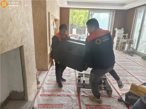 2024年4月11日,【平客壁爐】項目部帶隊上門,進行壁爐入場安裝。