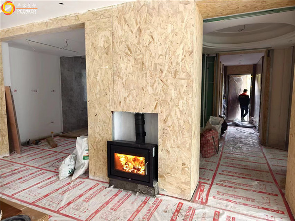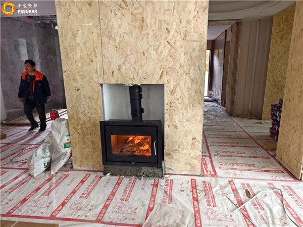 項目介紹:客戶選擇的是嵌入式壁爐丹麥Morso5660,它是一款對流型壁爐,因室內(nèi)橫向過長,戶外使用丹麥Exodraft壁爐風機代替戶外煙囪,解決壁爐抽力問題。根據(jù)項目裝修進度,室內(nèi)煙囪先行做預埋安裝,平客壁爐項目部帶隊上門安裝。