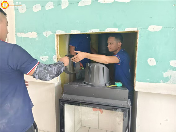 項(xiàng)目介紹:這是一款側(cè)開門嵌入式壁爐,可選配戶外進(jìn)風(fēng),根據(jù)項(xiàng)目進(jìn)度,應(yīng)客戶要求,壁爐煙囪先行入場安裝。平客壁爐項(xiàng)目部帶隊(duì)上門安裝。