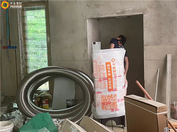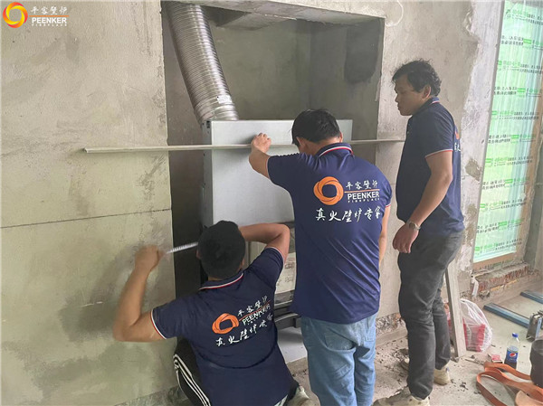項(xiàng)目介紹:提香別墅項(xiàng)目現(xiàn)場有磚石爐膛和煙道,所以業(yè)主選擇嵌入式壁爐丹麥Morso S101-12,這是一款提拉式爐門的壁爐,煙囪使用英國Schiedel柔性煙管,中間無接縫,平客壁爐項(xiàng)目部帶隊(duì)上門安裝!