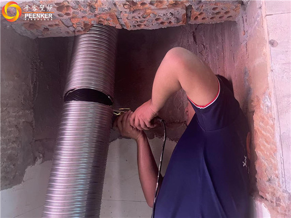 項目介紹:上海圣塔路斯別墅有現(xiàn)成的磚石爐膛和煙道,使用柔性煙管代替不銹鋼煙囪進行安裝,該項目由平客壁爐項目部帶隊上門安裝!