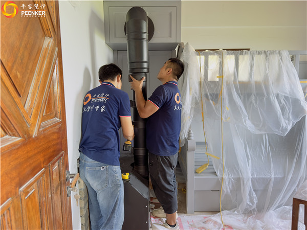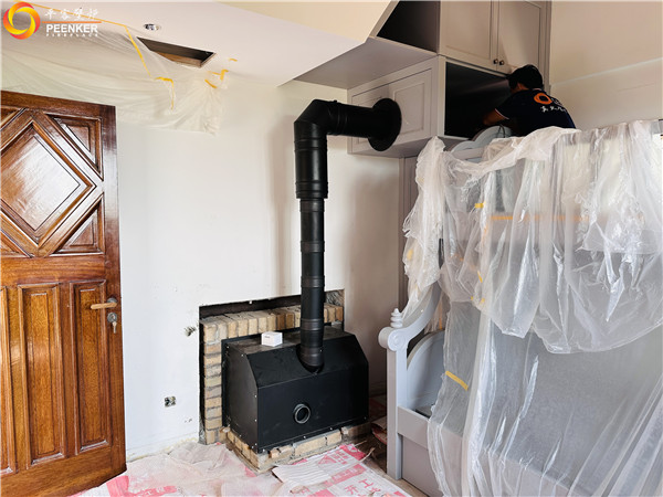 項目說明:該項目的壁爐安裝位置,原本是安裝了一臺雙面壁爐,客戶對之前的壁爐效果不滿意,所以拆除之后,選擇了平客壁爐在售丹麥希特貝斯嵌入式壁爐sigma,戶外采用丹麥Exodraft壁爐風(fēng)機代替煙囪,解決抽力問題。該項目由【平客壁爐】項目部同事上門安裝!