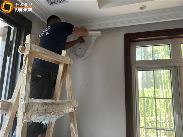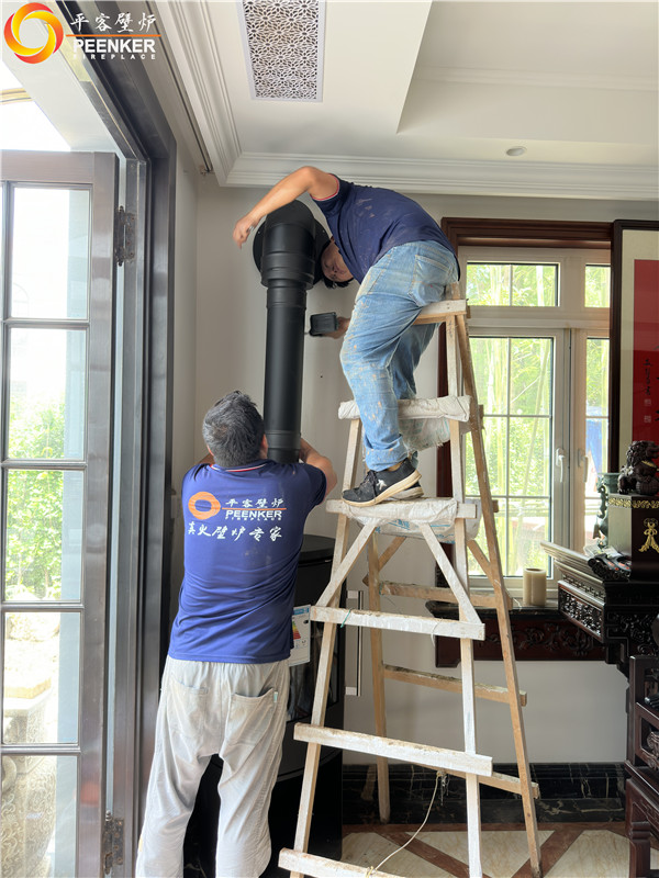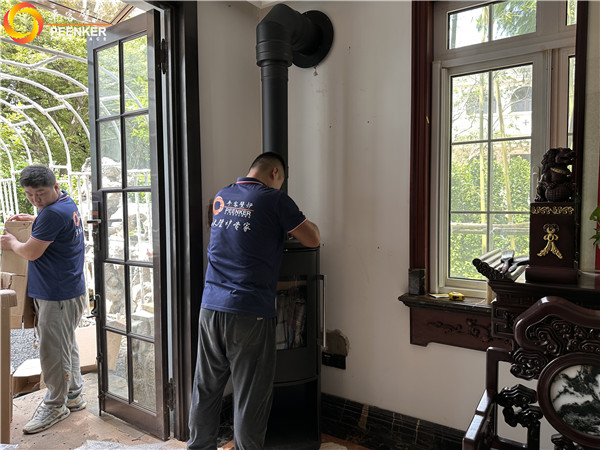 項目介紹:上海浦東金色維也納別墅已裝修入住,客戶想安裝壁爐解決冬季供暖,對已裝修的別墅,通常建議選擇獨立式火爐進行安裝??蛻暨x擇的這款是丹麥Morso 8893鑄鐵火爐,戶外使用丹麥Exodraft壁爐風(fēng)機,解決抽力問題?!酒娇捅跔t】項目部帶隊上門安裝。