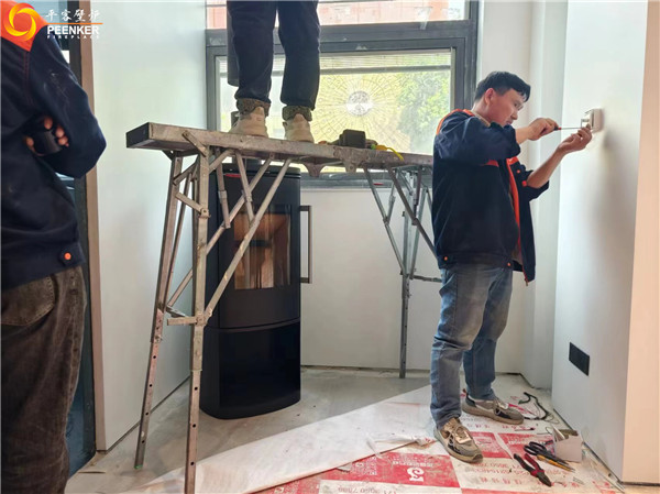 項目介紹:今天安裝的壁爐項目是高端別墅設(shè)計公司-【堂杰設(shè)計工作室】,客戶選擇的是丹麥Morso 8893獨立式火爐。真火壁爐安裝,需要根據(jù)裝修進度及時入場,該項目因室內(nèi)煙管需要被包入吊頂中,所以需要提前入場進行煙管的預(yù)埋安裝。戶外使用丹麥Exodraft壁爐風機代替?zhèn)鹘y(tǒng)不銹鋼煙囪,解決抽力問題。