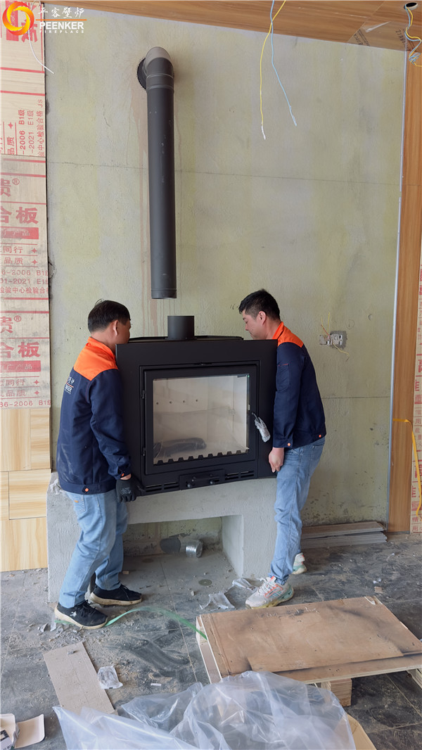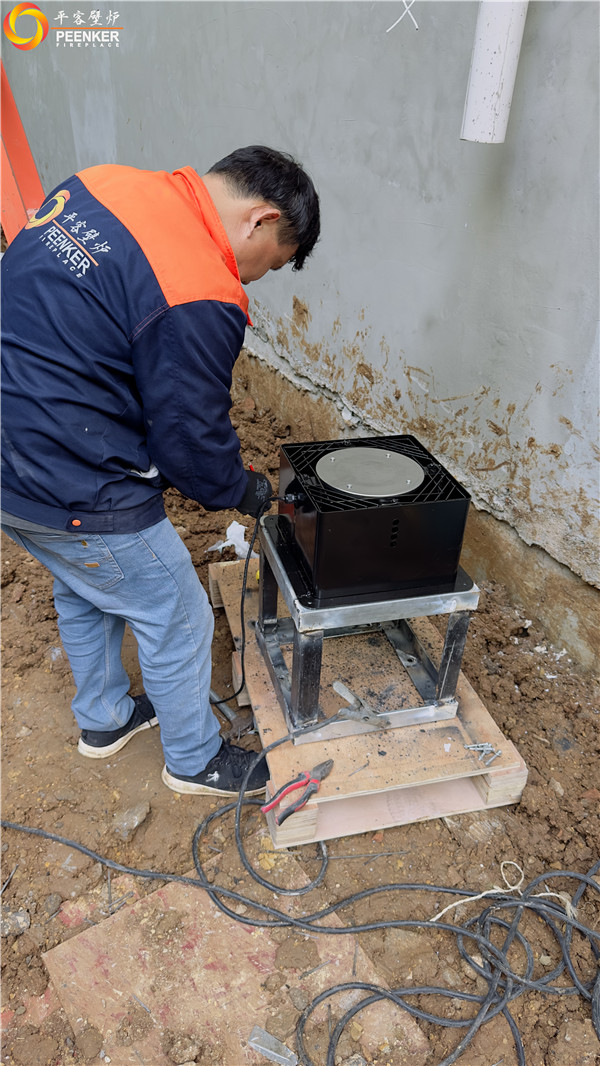 項目介紹:該項目為自建房類民宿項目,戶外因有屋檐阻隔,選擇使用國產(chǎn)壁爐風機代替戶外煙囪,解決抽力問題。【平客壁爐】項目部帶隊上門安裝。