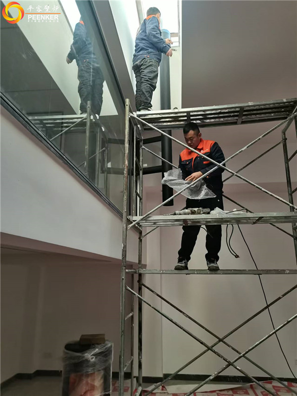 項目情況:該項目位于山東東營海欣盈園別墅項目,壁爐安裝在別墅地下室空間,煙囪穿天井出。該項目由【平客壁爐】項目部帶隊上門安裝。