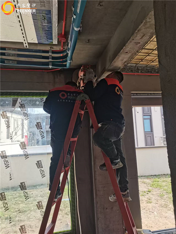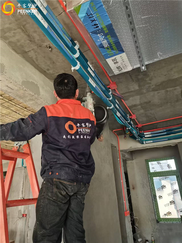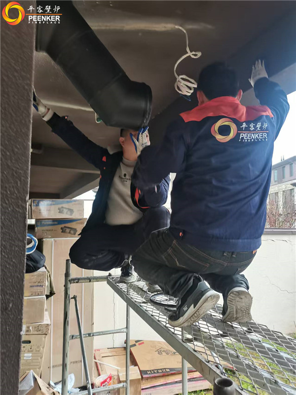 項目情況:項目位于宜興陽羨美廬翰墨軒別墅小區(qū),壁爐安裝在客廳位置,煙囪因橫向過長,戶外使用壁爐風(fēng)機解決抽力問題,由平客壁爐項目部上門指導(dǎo)安裝。