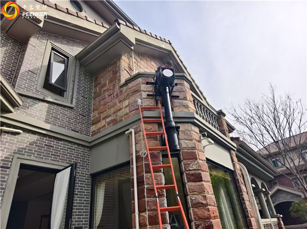 項(xiàng)目情況:項(xiàng)目位于常州美林湖別墅區(qū),為獨(dú)棟別墅,壁爐安裝在客廳角落位置,煙囪出側(cè)墻到戶(hù)外,因樓上有露臺(tái),所以戶(hù)外使用壁爐風(fēng)機(jī)代替不銹鋼煙囪,解決抽力問(wèn)題。由平客壁爐項(xiàng)目部上門(mén)指導(dǎo)安裝。