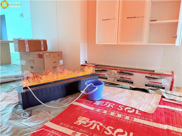 項(xiàng)目情況:項(xiàng)目位于上海世茂濱江小區(qū),仿真壁爐安裝在客廳中,霧化壁爐以水霧配合燈光模擬火焰效果,由平客壁爐帶隊(duì)上門(mén)安裝。