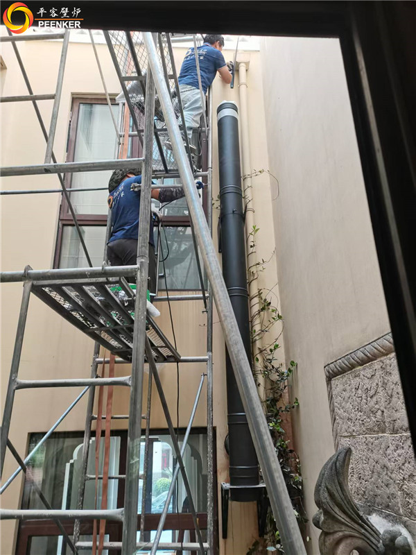 項(xiàng)目情況:項(xiàng)目位于上海環(huán)球翡翠灣別墅,壁爐安裝在客廳靠側(cè)墻,室內(nèi)煙囪出側(cè)墻加高過屋檐。由平客壁爐帶隊(duì)上門安裝。