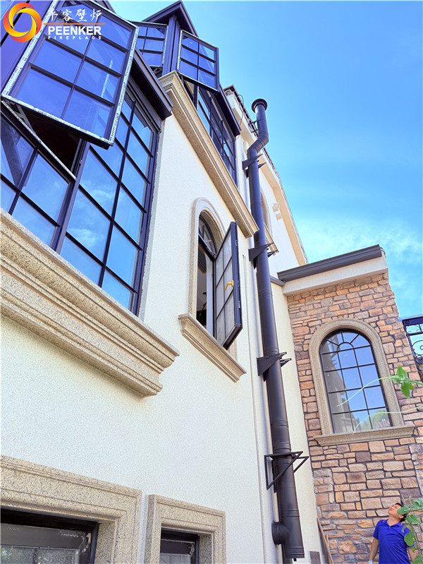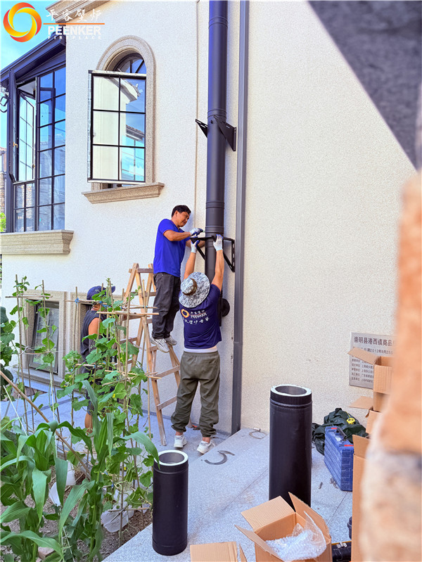 項(xiàng)目情況:項(xiàng)目位于上海崇明區(qū),壁爐被安裝在客廳,煙囪穿側(cè)墻出戶外豎直向上加高。由平客壁爐項(xiàng)目部帶隊上門安裝。