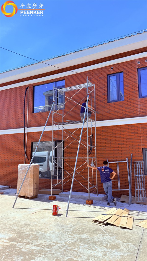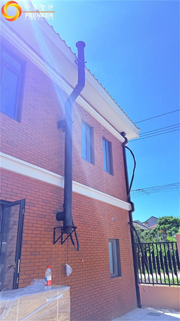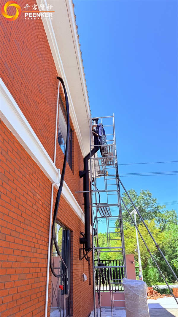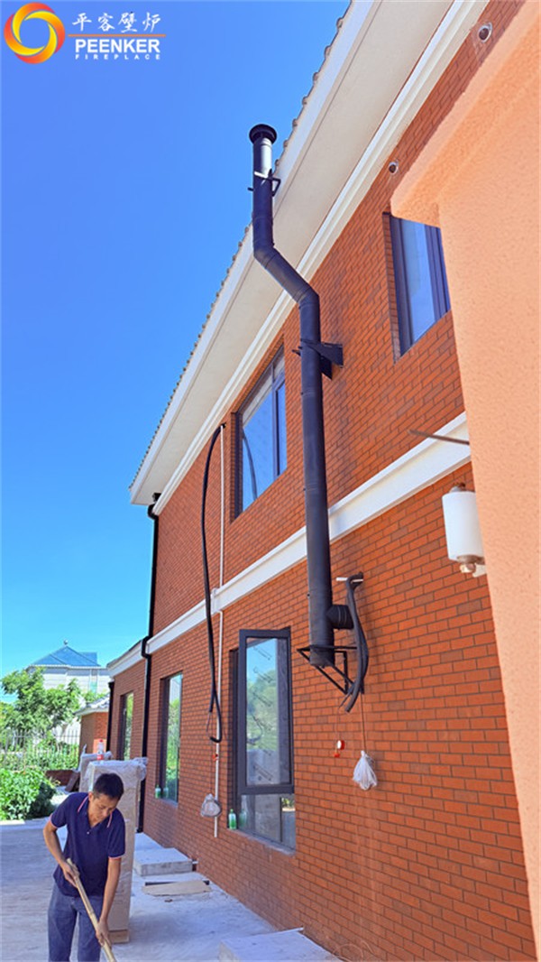 項目情況:該項目為獨棟別墅,壁爐安裝在客廳,煙囪出側(cè)墻到戶外加高過屋檐。由平客壁爐項目部帶隊上門安裝。