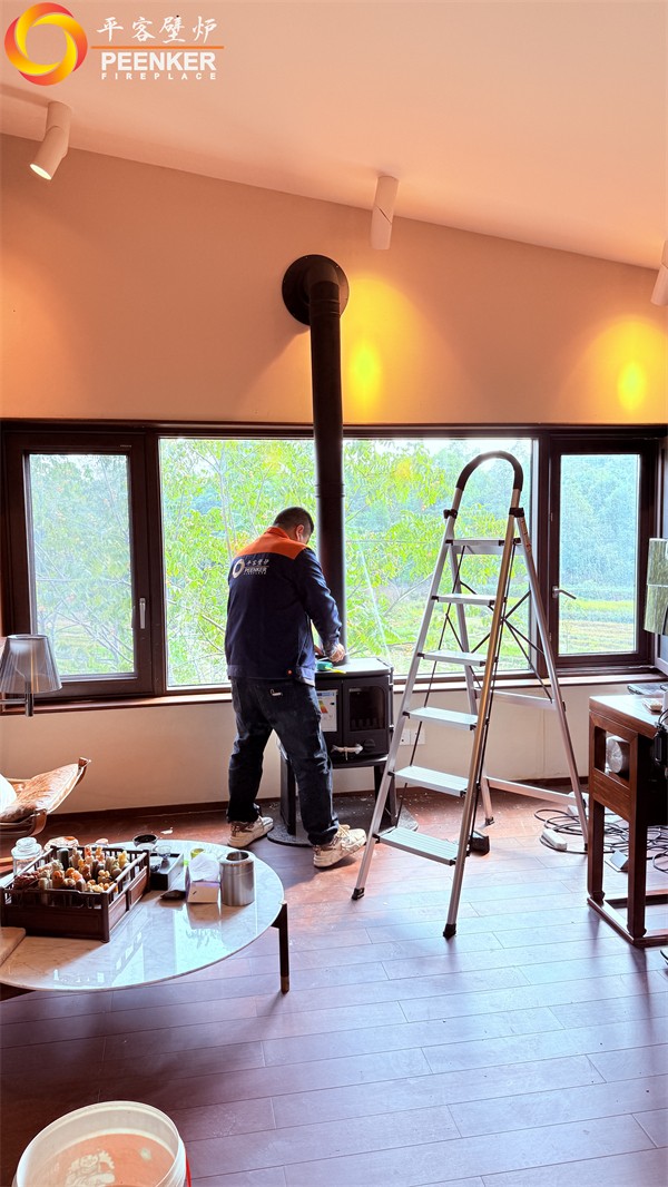 項(xiàng)目情況:該項(xiàng)目位于湖南益陽(yáng),壁爐安裝在二樓書房位置,煙囪穿側(cè)墻到戶外。由平客壁爐項(xiàng)目部帶隊(duì)上門安裝。