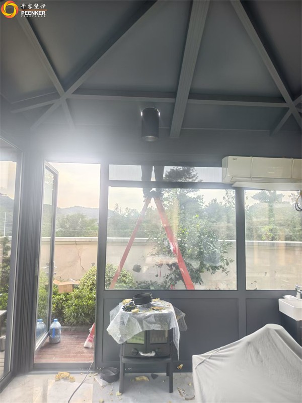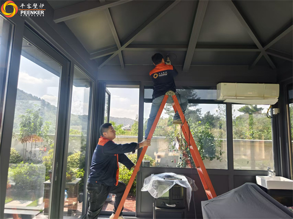 項(xiàng)目情況:該項(xiàng)目位于鎮(zhèn)江紫金7號(hào)別墅,壁爐安裝在庭院陽(yáng)光房中,因壁爐煙囪垂直高度達(dá)不到5米要求,戶外使用壁爐風(fēng)機(jī)解決抽力問(wèn)題。由平客壁爐項(xiàng)目部帶隊(duì)上門(mén)安裝。