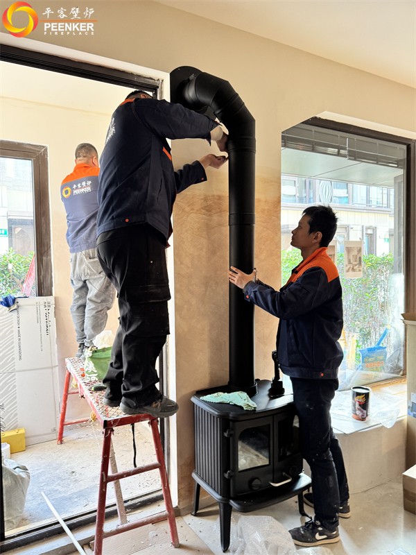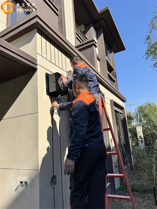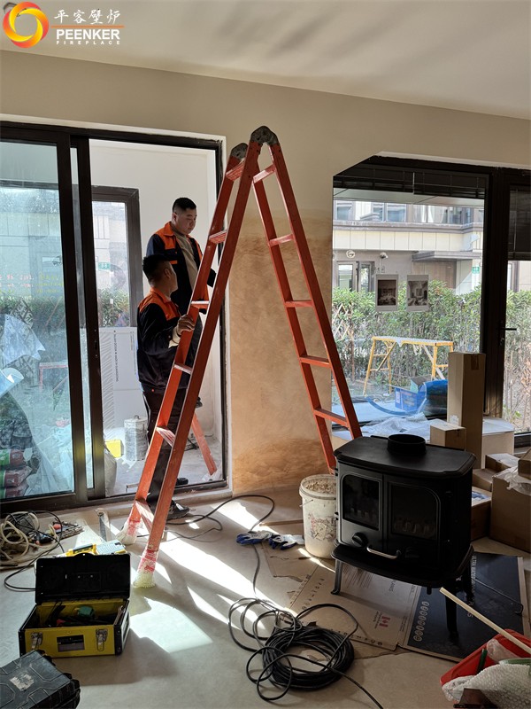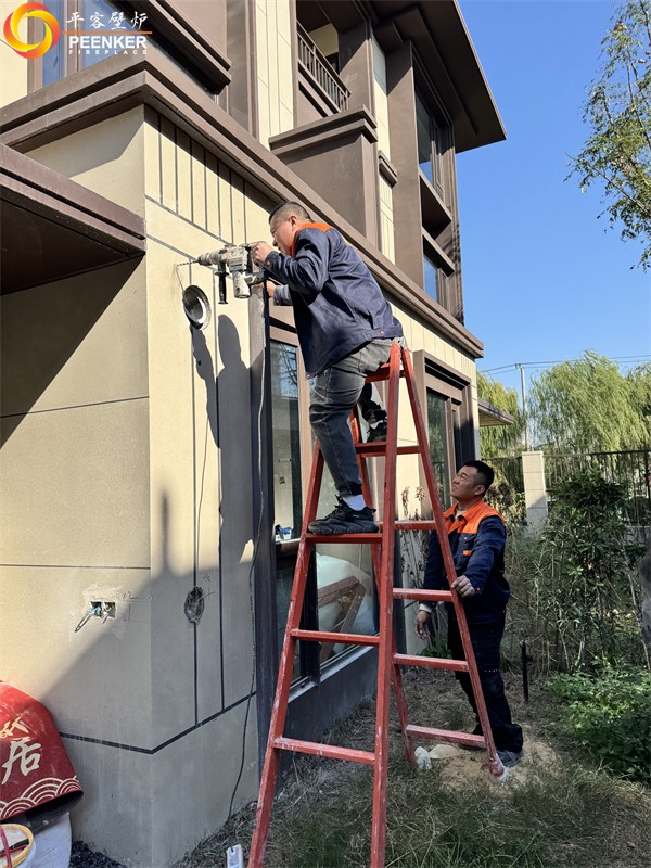 項(xiàng)目情況:該項(xiàng)目位于上海佘山望別墅,壁爐安裝在客廳,煙囪穿陽(yáng)臺(tái)到戶外,使用壁爐風(fēng)機(jī)解決抽力問(wèn)題。由平客壁爐項(xiàng)目部帶隊(duì)上門(mén)安裝。