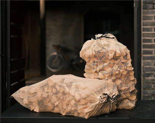 燃木長度為25±1cm,一致性好,網(wǎng)孔袋包裝(有效容量45L),櫟木槐木混裝,22袋為1立方米,品質(zhì)與我們以前從東歐進口的燃木別無二致。