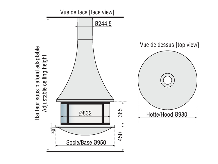 法國JC -Zelia 908懸掛別墅壁爐(黑色噴漆)