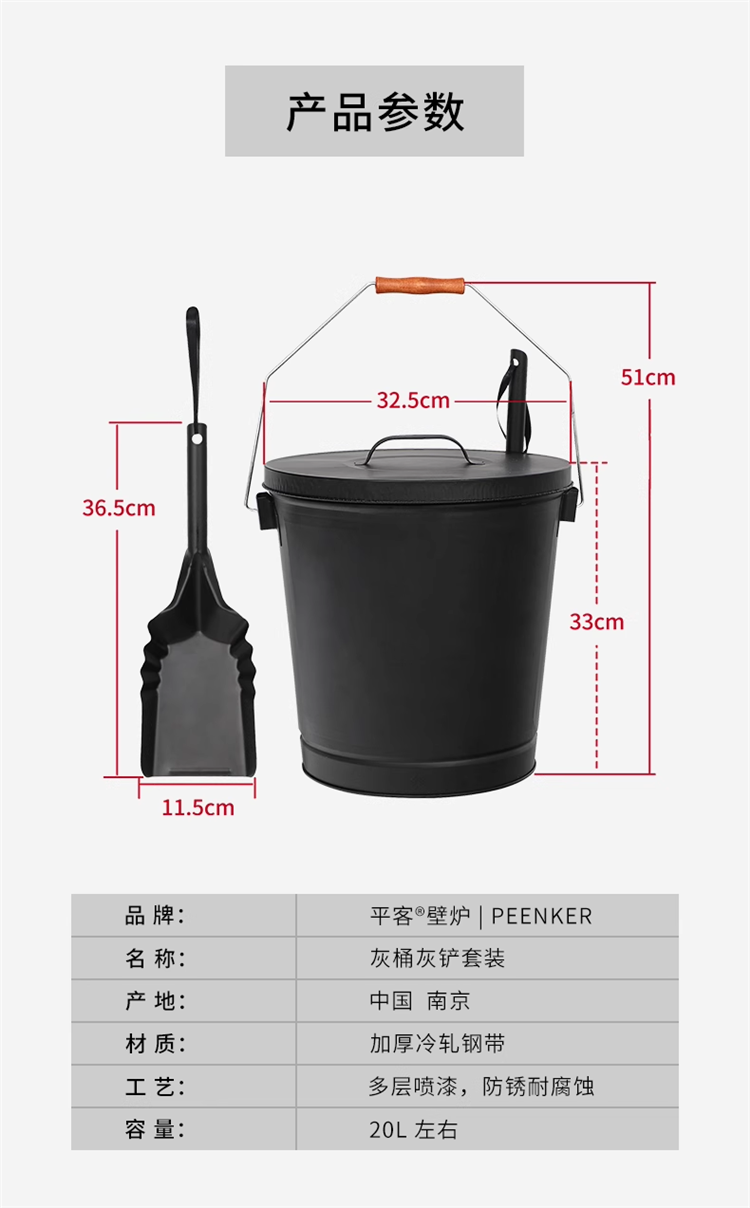 壁爐工具-帶蓋灰桶灰鏟套裝