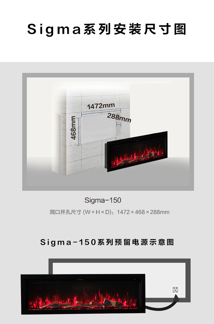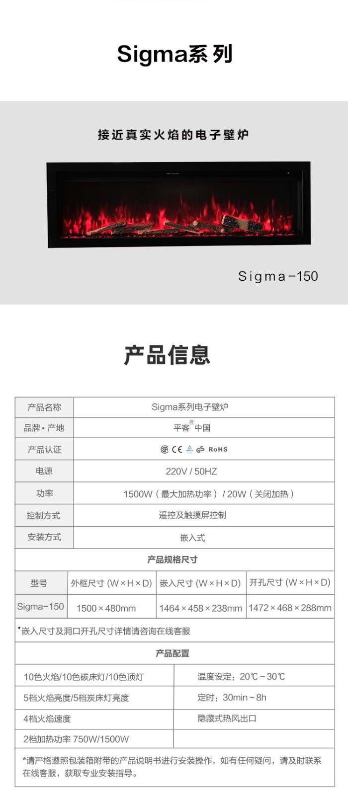 平客客廳假火背景墻裝飾電子壁爐-Sigma